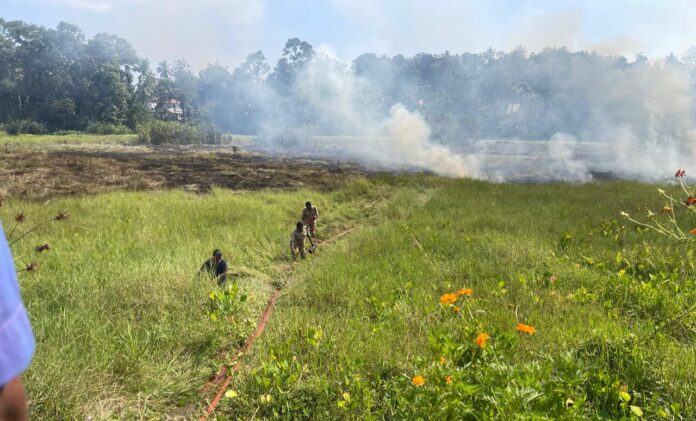തിരുവല്ലയിൽ നിന്നും എത്തിയ അഗ്നിശമനസേന ഉദ്യോഗസ്ഥർ ഒരു മണിക്കൂർ നേരം നടത്തിയ പരിശ്രമത്തിന് ഒടുവിൽ തീ അണച്ചു. സമീപ പുരയിടത്തിലെ മാലിന്യ കൂമ്പാരത്തിന് ഇട്ട തീ പാടശേഖരത്തിലേക്ക് പടരുകയായിരുന്നു എന്നതാണ് പ്രാഥമിക നിഗമനം.
