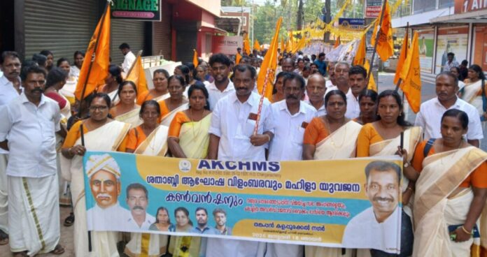 വൈക്കം: അഖില കേരള ചേരമർ ഹിന്ദുമഹാസഭയുടെ (എ കെ സി എച്ച് എം എസ് ) ശതാബ്ദി ആഘോഷങ്ങളുടെ ഭാഗമായി വൈക്കത്ത് വിളംബര ജാഥ നടത്തി. ഇന്ന് രാവിലെ 11.45ന് ലയൺസ് ക്ലബ്ബ് ഹാളിൽ നിന്ന് ആരംഭിച്ച ജാഥ കൊച്ചുകവല കെഎസ് ആർടിസി സ്റ്റാൻഡ് , കച്ചേരിക്കവല പടിഞ്ഞാറെനടവഴി സമ്മേളന നഗരിയിൽ എത്തി. വിളംബരജാഥയിൽ 700ഓളം പ്രവർത്തകർ അണിചേർന്നു.
