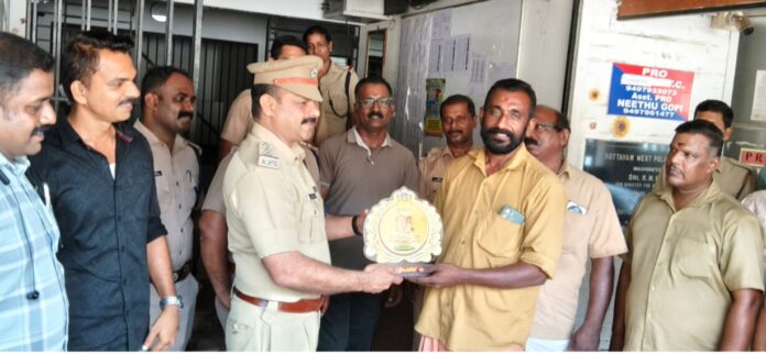 കോട്ടയം: പത്തോളം മോഷണക്കേസുകളിൽ പ്രതിയായ തമിഴ്നാട് സ്വദേശിനിയായ യുവതിയെ കുടുക്കാൻ പൊലീസിനെയും നാട്ടുകാരെയും സഹായിച്ച ഓട്ടോ ഡ്രൈവർക്ക് നാടിന്റെ ആദരം. കോട്ടയം തിരുനക്കര ബസ് സ്റ്റാൻഡിനു സമീപത്തെ ഓട്ടോ സ്റ്റാൻഡിലെ ഡ്രൈവറായ മണർകാട് സ്വദേശി മനോജ് കുമാർ ടി.ആറിനെയാണ് കോട്ടയം വെസ്റ്റ് പൊലീസ് ആദരിച്ചത്.