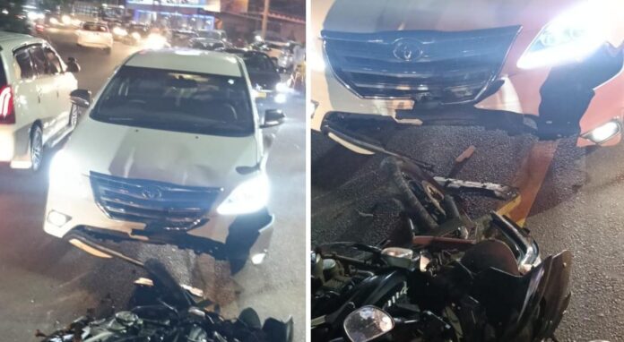 കോട്ടയം: എം സി റോഡിൽ മണിപ്പുഴയിൽ ഇന്നോവയും ബൈക്കും കൂട്ടിയിടിച്ച് അപകടത്തിൽ ബൈക്ക് യാത്രക്കാരന് പരിക്ക്. അപകടത്തെ തുടർന്ന് എം സി റോഡിൽ വൻ ഗതാഗതക്കുരുക്കും ഉണ്ടായി. ഇന്ന് വൈകിട്ട് എട്ട് മണിയോടെ ആയിരുന്നു അപകടം.