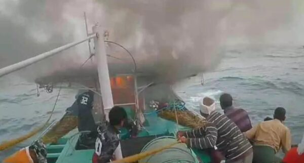 വെള്ളം പമ്പ് ചെയ്തെങ്കിലും തീ അണക്കാൻ കഴിഞ്ഞില്ല. വള്ളത്തിൽ ഉണ്ടായിരുന്ന ഓയിലുകൾക്കും തീ പിടിച്ചതോടെ കത്തലിന്റെ വ്യാപ്തി കൂടി. അന്തരീക്ഷത്തിൽ കറുത്ത പുക നിറഞ്ഞു. 45 തൊഴിലാളികളാണ് വള്ളത്തിൽ ഉണ്ടായിരുന്നത്.