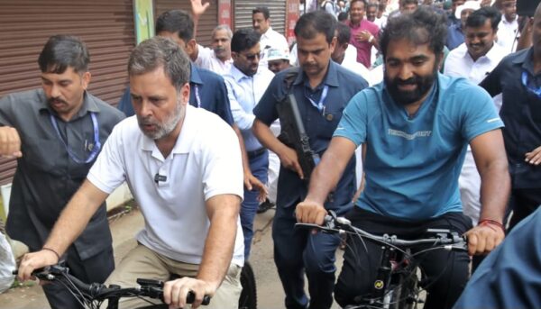 പാമ്പാടിയില് തിരഞ്ഞെടുപ്പ് പ്രചരണത്തിനെത്തിയ രാഹുല് ഗാന്ധി മണ്ഡലത്തിലെ സ്ഥാനാര്ത്ഥി ചാണ്ടി ഉമ്മനോടൊപ്പം സൈക്കിള് റാലി നടത്തിയത് പ്രവര്ത്തകര്ക്ക് ആവേശമായി. പാമ്പാടി ബസ് സ്റ്റാന്ഡിലെ തെരഞ്ഞെടുപ്പ് പൊതുയോഗത്തിന് ശേഷം കോട്ടയം കഞ്ഞിക്കുഴിയിലേക്ക് യാത്ര തിരിക്കുന്നതിന് തൊട്ടു മുമ്പാണ് എല്ലാവരേയും അമ്പരപ്പിച്ച് ചാണ്ടിയോടൊപ്പം അദ്ദേഹം റാലി നടത്തിയത്.