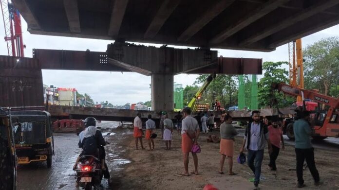 മറ്റൊരു സ്ഥലത്തു പണിത് കൊണ്ട് വന്ന ഗർഡർ പാലത്തിൽ ഉറപ്പിക്കാൻ ശ്രമിക്കുന്നതിനിടെയാണ് നിലംപതിച്ചത്. ഇരുമ്പ് റോപ്പ് പൊട്ടിയതാണ് 80 ടൺ ഭാരവും 24 മീറ്റർ നീളവുമുള്ള ഗർഡർ താഴെ വീഴാൻ കാരണമായത്.