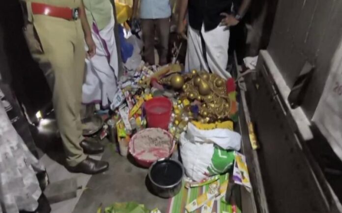 ബിജെപി, ഹിന്ദു ഐക്യവേദി പ്രവർത്തകർ സ്ഥലത്ത് എത്തി പ്രതിഷേധിച്ചു. പൊലീസ് പരിശോധന നടത്തി. ഗണപതി ഹോമത്തിൻ്റെ ദ്രവ്യങ്ങൾ ഉപയോഗിച്ച് നിർമ്മിക്കേണ്ട കരിപ്രസാദമാണ് കവറുകളിലാക്കിയ കറുത്ത പൊടി ഉപയോഗിച്ച് നിർമ്മിച്ചിരുന്നത്. സംഭവത്തെ തുടർന്ന് കെട്ടിടം പൂട്ടിച്ചു.