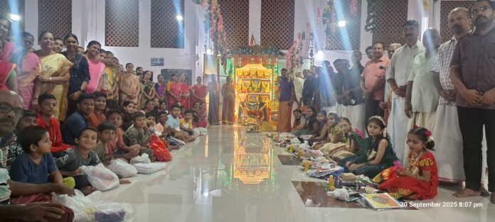 തിരുവല്ല : തിരുവല്ല ഗൗഡ സാരസ്വത ബ്രാഹ്മണ സമാജത്തിൻ്റെ ആഭിമുഖ്യത്തിൽ നടന്നു വരുന്ന നവരാത്രി മഹോത്സവത്തിൻ്റെ ഭാഗമായി ദുർഗ്ഗാഷ്ടമി ദിവസം കുമാരീപൂജ നടന്നു .സുരേഷ് എ പൈയുടെ മുഖ്യ കർമികത്വത്തിൽ കുമരിമാരെ ഒൻപത് ദേവിമാരായി സങ്കൽപ്പിച്ച് നടന്ന ചടങ്ങിൽ സെക്രട്ടറി സുദർശൻ ടീ എൻ, പ്രസിഡൻ്റ് രാജേഷ് വി പ്രഭു , സമാജം ഗ്രാമസഭ കമ്മിറ്റി അംഗങ്ങൾ ,വാർഡ് കൗൺസിലർ ശ്രീനിവാസ് പുറയറ്റ്, ഗ്രാമജനങ്ങൾ എന്നിവർ പങ്കെടുത്തു.