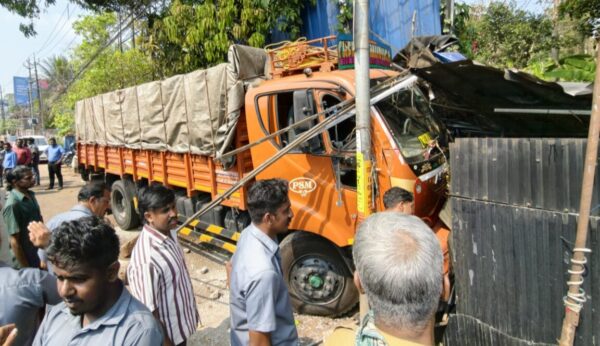 ചവിട്ടുവരിയിൽ നിയന്ത്രണം നഷ്ടമായ ലോറി റോഡരികിലെ തട്ടുകട ഇടിച്ചു കയറി: ഡ്രൈവർക്ക് ഗുരുതര പരിക്ക്