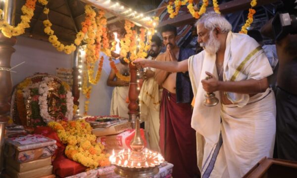 കോട്ടയം: നവരാത്രിയാഘോഷത്തിന്റെ ഭാഗമായി പനച്ചിക്കാട് ദക്ഷിണ മൂകാംബിക ക്ഷേത്രത്തിൽ പൂജവെയ്പ്പ് ചടങ്ങ് നടന്നു. ഇന്ന് വൈകിട്ട് കുഴിമറ്റം ഉമാ മഹേശ്വര ക്ഷേത്രത്തിൽ നിന്നും വിശിഷ്ട ഗ്രന്ഥങ്ങളും പാഠപുസ്തങ്ങളും വഹിച്ചു കൊണ്ടുള്ളഘോഷയാത്ര ആരംഭിച്ചു. തുടർന്ന് പരുത്തും പാറ ജംഗ്ഷനിൽ എത്തിയപ്പോൾ കുട്ടികളും ഘോഷയാത്രയുടെ ഭാഗമായി.