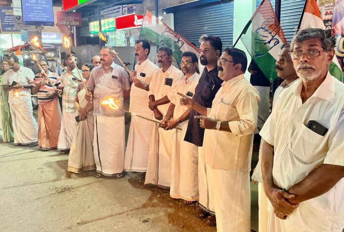 പത്തനംതിട്ട : രാഹുൽ ഗാന്ധി നയിക്കുന്ന വോട്ടർ അധികാർ യാത്രയ്ക്ക് ഐക്യദാർഢ്യം പ്രഖ്യാപിച്ചുകൊണ്ട് കോൺഗ്രസ് ഇലന്തൂർ മണ്ഡലം കമ്മിറ്റി നടത്തിയ നൈറ്റ് മാർച്ചിൻ്റെ സമാപന സമ്മേളനം ജവഹർ ബാൽ മഞ്ചിൻ്റെയും,ഗാന്ധി ദർശൻ വേദിയുടെയും ജില്ലാ ചെയർമാൻ കെ.ജി.റെജി ഉദ്ഘാടനം ചെയ്തു.