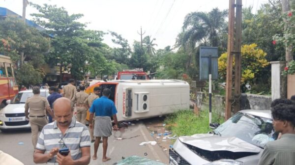 നിയന്ത്രണം നഷ്ടമായ ആംബുലൻസ് കാറിൽ ഇടിച്ച് മറിഞ്ഞ് ഒരാൾക്ക് ദാരുണാന്ത്യം:  മൂന്നു പേർക്ക്  പരിക്ക്
