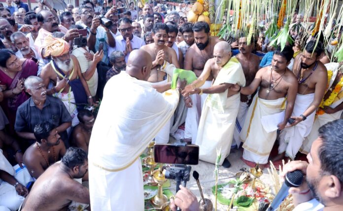 ശരകൂടതിൽ കോയ്മവടി സ്ഥാപിച്ച ശേഷം ജപിക്കുന്നതിനായി ദേവസ്വം അഡ്മിനിസ്ട്രേറ്റീവ് ഓഫീസർ അജിത് കുമാർ കാപ്പുകൾ കൂത്താടികൾക്ക് കൈമാറി. ജപിച്ച കാപ്പുകൾ കൂത്താടികൾ കൊയിമസ്ഥാനിക്ക് കൈമാറുകയും കൊയ്മസ്ഥാനിൽ നിന്നും കാപ്പുകൾ വാങ്ങി വെറ്റില ചേർത്ത് മേൽശാന്തി കോയ്മവടിയിൽ കെട്ടുകയും ചെയ്തു.