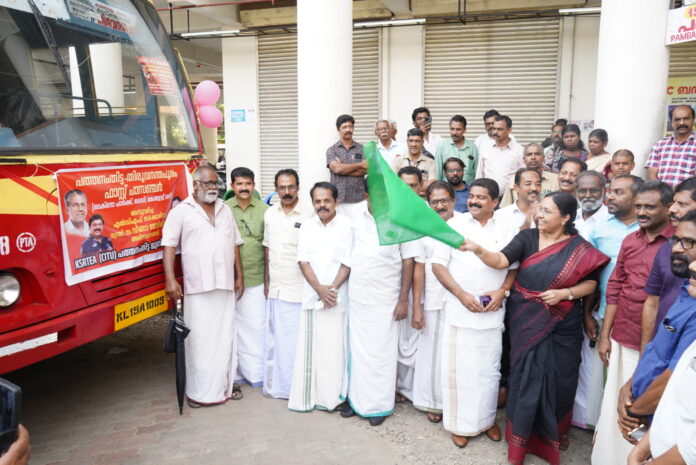 പത്തനംതിട്ട : പത്തനംതിട്ടയില്‍ നിന്ന് പട്ടാഴി വഴി തിരുവനന്തപുരത്തേക്ക് സര്‍വീസ് അനുവദിച്ച കെഎസ്ആര്‍ടിസി ഫാസ്റ്റ് പാസഞ്ചര്‍ ബസ് പത്തനംതിട്ട ഡിപ്പോയില്‍ ആരോഗ്യ വകുപ്പ് മന്ത്രി വീണാ ജോര്‍ജ് ഫ്‌ലാഗ് ഓഫ് ചെയ്ത് ഉദ്ഘാടനം നിര്‍വഹിച്ചു. പ്രതിദിനം 14 ലക്ഷം രൂപ എന്ന ലക്ഷ്യം മറികടന്ന് 19 ലക്ഷം രൂപ വരുമാനം നേടിയ പത്തനംതിട്ട ഡിപ്പോയുടെ പ്രവര്‍ത്തനം അഭിനന്ദനാര്‍ഹമാണ്. കെഎസ്ആര്‍ടിസിക്ക് കൂടുതല്‍ ഗുണഭോക്താക്കളുള്ള നാടാണ് പത്തനംതിട്ടയെന്നും മന്ത്രി പറഞ്ഞു.