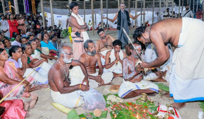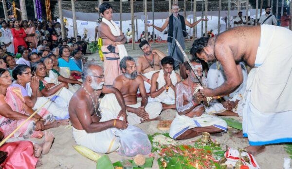 തുടർന്ന് കട്ടിൽ ഉൾപ്പെടെ കൂത്താടിയെ ചുമന്ന് ക്ഷേത്ര മതിൽക്കെട്ടിനു പുറത്ത് എട്ടു ദിക്കിലും പൂജകൾ ചെയ്തു. അവസാന പൂജ നിർവഹിച്ച വടക്കു കിഴക്കേ കോണിൽ പറ കൊട്ടി മണിയടിച്ച് പൂജാ ചടങ്ങുകൾ പൂർത്തിയായപ്പോൾ കൂത്താടി ആവേശം ഉൾക്കൊണ്ട് കെട്ടുകൾ പൊട്ടിച്ചെറിഞ്ഞ് ചൂരൽക്കാടുകൾ ദേഹത്തു ചുറ്റി യജ്ഞവേദിയിലേക്ക് ഓടിയെത്തി ഉറഞ്ഞു തുള്ളി.