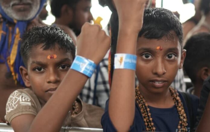 ശബരിമല : ശബരിമലയിലെത്തുന്ന കുട്ടികൾക്ക് കരുതലായി പോലീസിൻ്റെ ആം ബാൻഡ്. പത്തുവയസിൽ താഴെയുള്ള മുഴുവൻ കുട്ടികളുടെയും കൈയ്യിൽ കുട്ടിയുടെ പേരും കൂടെയുള്ള മുതിർന്ന ആളുടെ മൊബൈൽ നമ്പരും രേഖപ്പെടുത്തിയ ബാൻഡ് കെട്ടിയാണ് പമ്പയിൽ നിന്ന് വിടുന്നത്. കുട്ടിയുടെ വിവരങ്ങൾ ഉൾപ്പെടുത്തിയുള്ള ക്യു.ആർ. കോഡും ബാൻഡിലുണ്ട്.
