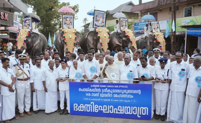 തിരുവല്ല: ആദിയർ ജനതയുടെ ദേശീയ ഉത്സവമായ പൊയ്കയിൽ ശ്രീകുമാര ഗുരുദേവന്റെ 148-മത് ജന്മദിന മഹോത്സവത്തോടനുബന്ധിച്ച് പി.ആർ.ഡി.എസ് നടത്തിയ ഭക്തിഘോഷയാത്ര മനുഷ്യസാഗരമായി. ശുഭ്രവസ്ത്രധാരികളായ പതിനായിരക്കണക്കിന് വിശ്വാസികൾ ഭക്തിഘോഷയാത്രയിൽ അണിനിരന്നു.