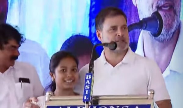 തൊടുപുഴ: വന്ദേമാതരം ആലപിച്ച പെൺകുട്ടിയെ അഭിനന്ദിച്ച് രാഹുൽ ഗാന്ധി. കുട്ടിയെ ചേർത്തു പിടിച്ച് ഇവരാണ് കേരളത്തിലെ സ്ത്രീത്വത്തെ പ്രതിനിധീകരിയ്ക്കുന്നത് എന്നും രാഹുൽ പ്രശംസിച്ചു. ഇടുക്കി കട്ടപ്പനയിലെ യുഡിഎഫ് തെരഞ്ഞെടുപ്പ് പ്രചാരണ യോഗത്തിലാണ് ഉടുമ്പൻചോല സ്വദേശിനിയായ ജിയ കെ സിബി ആണ് വന്ദേമാതരം ആലപിച്ചത്.