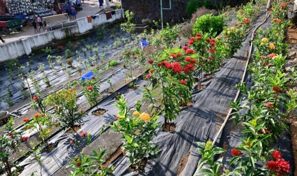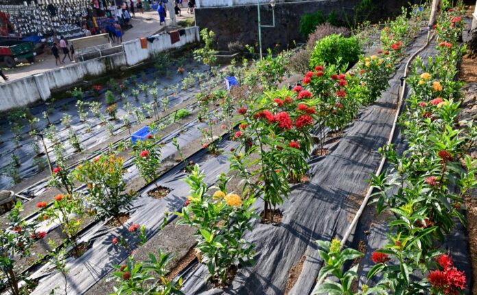 അഞ്ചുതട്ടുകളിലായാണ് ഇവിടെ ചെടികള് നട്ടുപിടിച്ചിരിക്കുന്നത്. 1200 മുല്ല, 750 റോസാച്ചെടികള്, 1000 ചെത്തി തുടങ്ങിയവയാണ് നട്ടുപിടിപ്പിരിക്കുന്നതെന്ന് മരാമത്ത് വിഭാഗം അസിസ്റ്റന്റ് എന്ജിനീയര് ജി. മനോജ് കുമാര് പറഞ്ഞു. ജമന്തി, തുളസി എന്നിവയുമുണ്ട്. മരാമത്ത് വിഭാഗമാണ് പൂന്തോട്ടം പരിപാലിക്കുന്നത്.
