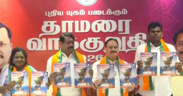 ചെന്നൈ : 2026-ലെ തമിഴ്നാട് നിയമസഭാ തിരഞ്ഞെടുപ്പിനുള്ള പ്രകടനപത്രിക പുറത്തിറക്കി ബിജെപി. പൊതുജനക്ഷേമം ശക്തിപ്പെടുത്തുന്നതിനും, ഗുണനിലവാരമുള്ള ആരോഗ്യ സംരക്ഷണത്തിലേക്കുള്ള പ്രവേശനം മെച്ചപ്പെടുത്തുന്നതിനും, സംസ്ഥാനത്തെ താമസക്കാർക്ക് സാമ്പത്തിക സ്ഥിരത ഉറപ്പാക്കുന്നതിനും പ്രകടനപത്രിക ഊന്നൽ നൽകുന്നു.