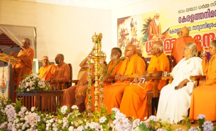 മാര്ഗദര്ശകമണ്ഡലിന്റെ നേതൃത്വത്തില് സംന്യാസിശ്രേഷ്ഠര് നയിക്കുന്ന ധര്മസന്ദേശയാത്ര കോട്ടയത്ത് എത്തിയപ്പോള് ചേര്ന്ന വിരാട് ഹിന്ദുസമ്മേളനത്തില് ധര്മ സന്ദേശം നല്കുകയായിരുന്നു സ്വാമി. സന്യാസി സമൂഹം മുഴുവന് സമൂഹത്തിന്റെയും നന്മയ്ക്കായാണ് നിരന്തരം പ്രവര്ത്തിക്കുന്നത്. ഹിന്ദുവിനെ നിരന്തരം അപമാനിക്കുകയും ക്ഷേത്രങ്ങള് ആക്രമിക്കുകയും ചെയ്യുന്ന ഇക്കാലത്ത് ഇതിനുള്ള പരിഹാരം എന്താണെന്ന് ചര്ച്ച ചെയ്യണം.