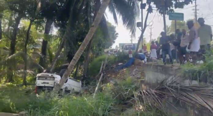 തീർത്ഥാടനം കഴിഞ്ഞ് മടങ്ങിയ സംഘം സഞ്ചരിച്ചിരുന്ന കാർ തലകീഴായി  മറിഞ്ഞു: മൂന്ന് പേർക്ക് പരിക്ക്
