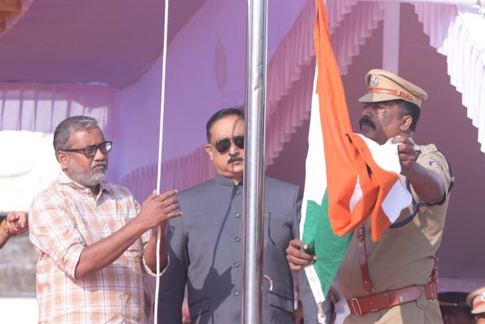 വേദിയിലെത്തിയ മുഖ്യാതിഥിയായ മന്ത്രിയെ ജില്ല കളക്ടർ അലക്സ് വർഗീസും ജില്ലാ പൊലീസ് മേധാവി എം.പി.മോഹന ചന്ദ്രനും  ചേർന്ന് സ്വീകരിച്ചു. തുടർന്ന് പതാക ഉയർത്തിയ ശേഷം മന്ത്രി പരേഡ് പരിശോധിച്ചു.