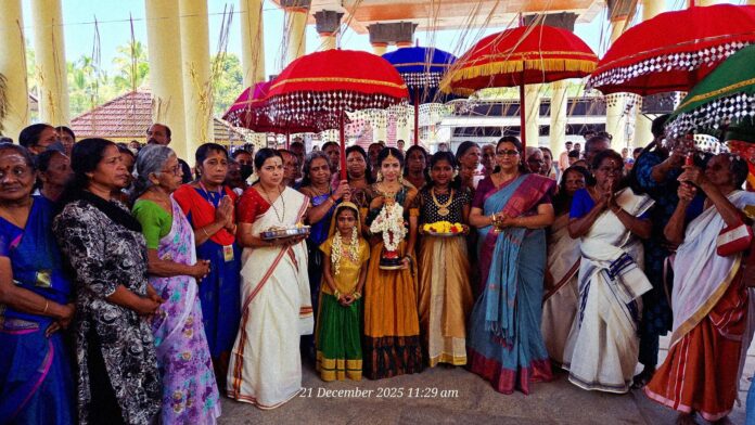 26 ന് രാവിലെ 9 -ന് കലശാഭിഷേകവും ഉച്ചകഴിഞ്ഞ് 3 ന് കാവുംഭാഗം തിരു- ഏറാങ്കാവ് ക്ഷേത്രത്തിൽ നിന്ന് തിരുവാഭരണ ഘോഷയാത്രയും നടക്കും. കാര്യദർശി മണിക്കുട്ടൻ നമ്പൂതിരി നേതൃത്വം നൽകും. സമാപന ദിവസമായ ഡിസംബർ 27 ന് കാവടി – കരകാട്ടവും ചക്കരക്കുളത്തിൽ ആറാട്ടും തൃക്കൊടിയിറക്കവും തുടർന്ന് മഞ്ഞനീരാട്ടും നടക്കും.