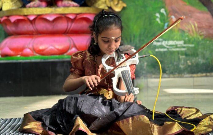 ശബരിമല: ഞായറാഴ്ച പ്രഭാതം സന്നിധാനത്തെ ഭക്തിസാന്ദ്രമാക്കി നാലാം ക്ലാസുകാരി വൈഗ വിപിന്റെ വയലിൻ കച്ചേരി. കഴിഞ്ഞ അഞ്ചുവർഷമായി തുടർച്ചയായി അയ്യപ്പ ദർശനത്തിന് എത്തുന്ന വൈഗ ഇത് ആദ്യമായാണ് സന്നിധാനത്ത് വയലിൻ കച്ചേരി അവതരിപ്പിക്കുന്നത്.