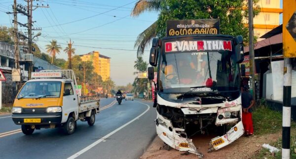 നാടകം കഴിഞ്ഞ് ആലൂവായിൽ നിന്നും തിരുവനന്തപുരത്തേക്ക് പോയ രംഗക്ഷേത്ര നാടക ബസും തിരുവനന്തപുരത്തു നിന്നും എറണാകുളത്തേക്ക് പോയ സ്വകാര്യ കാറും കൂട്ടിയിടിച്ചത്. നാടക വാഹനത്തിൽ 16 പേരും കാറിൽ ഭാര്യയും ഭർത്താവും മാത്രമേ ഉണ്ടായിരുന്നുള്ളൂ കാറിൻ്റെ ഡ്രൈവർ ഉറങ്ങിപ്പോയതാണ് അപകടത്തിനു കാരണമെന്ന് നാടകക്കാരനായ ഷിബു പറഞ്ഞു. കാറിൽ സഞ്ചരിച്ച ദമ്പതിന്മാരിൽ പരിക്കേറ്റ ഭാര്യയെ തിരുവല്ലയിലെ സ്വകാര്യ ആശുപത്രിയിൽ പ്രവേശിപ്പിച്ചു.