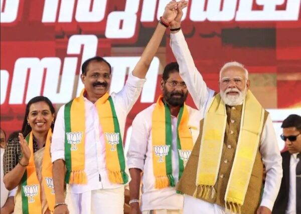 എൽഡിഎഫിന്റെയും യുഡിഎഫിന്റെയും ചിഹ്നം രണ്ടാണെങ്കിലും അജണ്ട ഒന്ന് തന്നെയാണ്.എൽഡിഎഫ് വികസനത്തിന്റെ ശത്രുവാണ്.പാവപ്പെട്ട വിദ്യാർത്ഥികൾക്ക് പിഎംശ്രീയുടെ ഗുണം നിഷേധിച്ചു.പി എം ആവാസ് യോജന അർബൻ നടപ്പാക്കുന്നില്ല. കേരളത്തെ വികസിതമാക്കാൻ ഡബിൾ എഞ്ചിൻ സർക്കാർ വരേണ്ടതുണ്ട്.ബിജെപി സർക്കാർ അധികാരത്തിൽ വന്നാൽ സ്വർണ്ണകൊള്ള പ്രതികളെ ജയിലിൽ അടയ്ക്കും.സഹകരണ ബാങ്കുകളിൽ നിന്നും മോഷ്ടിച്ചവരിൽ നിന്നും പണം ഈടാക്കി നൽകുമെന്നും പ്രധാനമന്ത്രി പറഞ്ഞു.